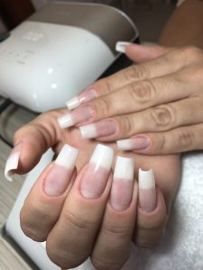 Trabalhamos com a técnica de COLORIMETRIA, para deixar as pontas das unhas mais claras com aspecto natural realista. A unha de fibra silk é um tipo de alongamento feito a partir de fios de fibra de vidro fixadas na unha e moldados em cima da unha natural, seguindo seu formato – ou o formato que você desejar. Quem pode fazer o alongamento: essa técnica é perfeita para quem não consegue deixar as unhas crescerem, para mulheres que tem unhas naturais fracas e quebradiças.