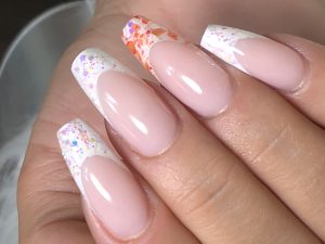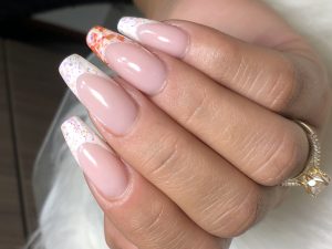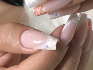 A técnica de francesinha reversa deve ser feita nas unhas de alongamento, sejam elas de unhas de gel, acrílico ou fibra de vidro.